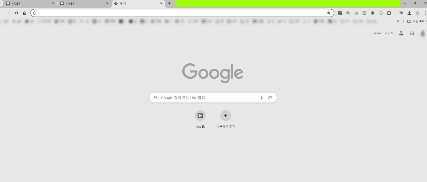 연두색 부분 인터넷창이 열려 있지 않는 남는 부분에 우클릭 하셔야 됩니다.