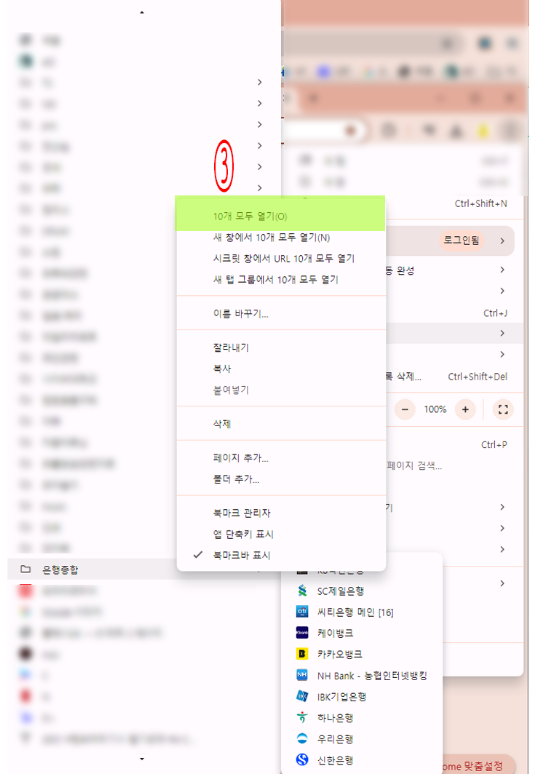 4. 북마크 폴더의 웹사이트 한 번에 열기