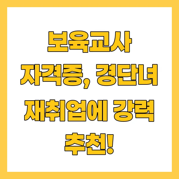 이러한 전반적인 준비 과정을 거친다면, 경단녀 분들은 보다 자신감 있게 재취업 시장에 진입할 수 있을 것입니다. 특히 보육교사 자격증은 여성분들이 재취업을 위해 선택할 수 있는 매우 안전하고 유망한 경로 입니다. 전문성을 갖춘 보육교사로서 새로운 커리어를 시작할 수 있는 가능성을 높이는 데 있어 철저한 준비는 필수적 입니다.