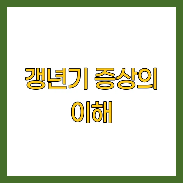 갱년기는 여성의 생리 주기가 종료되면서 겪게 되는 생리적 변화로, 일반적으로 45세에서 55세 사이에 나타나는 현상 입니다. 이 시기에 여성의 몸은 에스트로겐 과 같은 주요 호르몬의 생산이 급격히 감소하게 되어 여러 가지 신체적, 정서적 증상을 경험하게 됩니다. 통계적으로, 약 75% 이상의 여성들이 갱년기 증상을 느낀다고 보고되고 있으며 , 이로 인해 삶의 질에 중대한 영향을 미치기도 합니다.