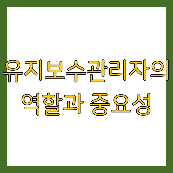 유지보수관리자의 역할과 중요성