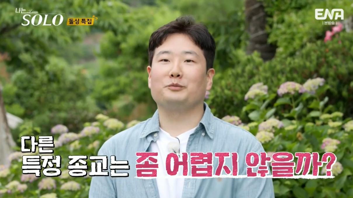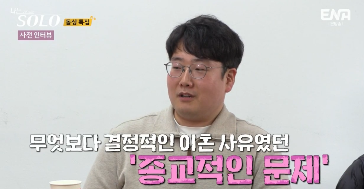 종교때문에 이혼을 하였고 솔로나라에서도 특정 종교 가지신 분들은 좀 어려울것 같다고 하시네