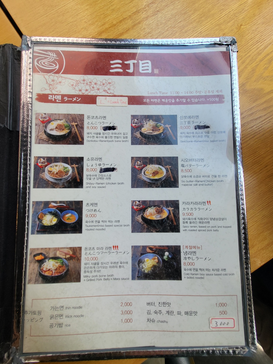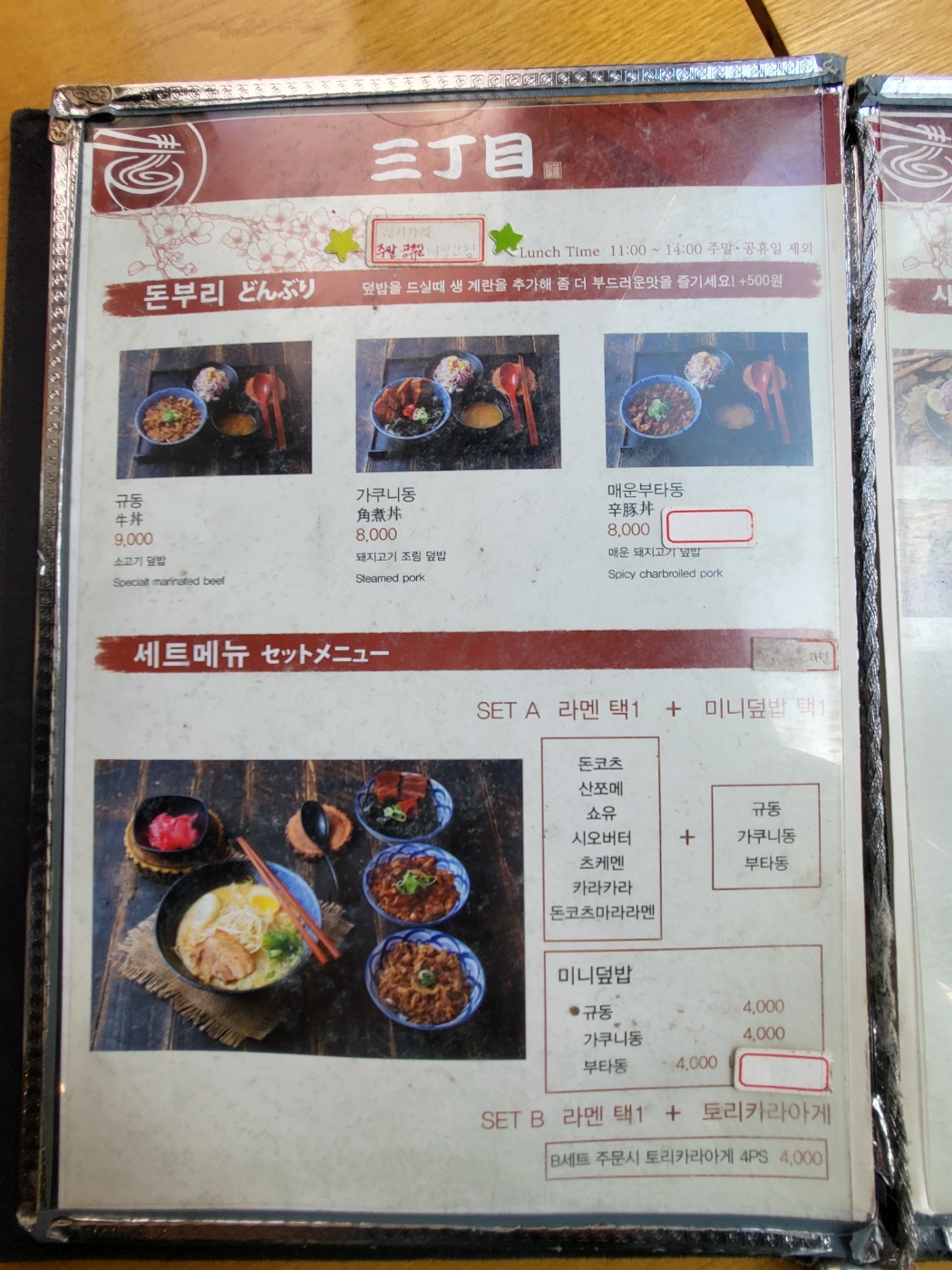 저는 세트메뉴 산쪼메와 규동을 먹었는데요 규동은 그냥 대패삼겹살 쪼가리에 간장섞어서 먹는 맛이었고요 산쪼메는 돈코츠맛에 양념이 조금 들어간 맛이었습니다. 반판으로는 빨갛게 양념한 단무지가 있었는데요 전체적으로 개인적으로 맛이 없는건 아닌데 영혼이 안느껴지는 맛이 었습니다. 솔직한 후기를 위해서 적어 봅니다. 추천은 하지 않겠습니다. 일본라면 좋아하시는 분이라면 괜찮기는 하겠네요 저는 개인적으로는 제 입맛에 안맞아서 그런지 추천까진 못할것 같습니다.