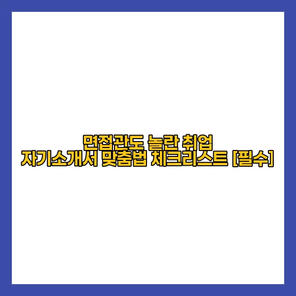 이러한 팁들을 통해 면접관의 마음을 사로잡는 완벽한 자기소개서를 준비하시길 바랍니다. 자기소개서는 여러분의 첫인상을 남기는 중요한 도구이므로, 철저한 준비와 신중한 표현이 항상 필요합니다. 자신감을 가지고 여러분의 이야기를 풀어내 보세요! 💪🎉