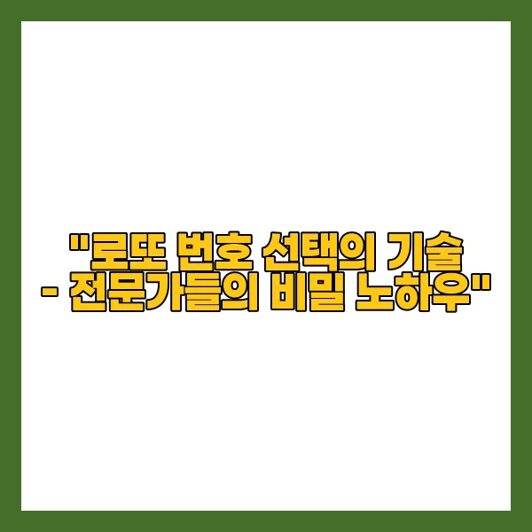 "로또 번호 선택의 기술 - 전문가들의 비밀 노하우"