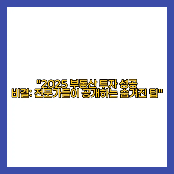 "2025 부동산 투자 성공 비결: 전문가들이 공개하는 숨겨진 팁"