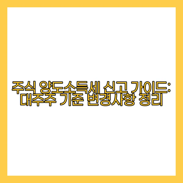 최근 주식 양도소득세 신고에 있어 대주주 기준이 변경됨에 따라 많은 투자자들이 혼란을 겪고 있습니다. 이러한 변화는 세무 계획에 중대한 영향을 미치며, 이에 대한 정확한 이해는 필수적입니다. 본 가이드는 대주주 정의의 변화부터 실질적인 신고 기준과 절차, 세금 계산 방법에 이르기까지 모든 항목을 상세히 다룰 예정입니다. 올바른 정보와 전략을 통해 효율적인 세무 관리를 이루어 보세요.