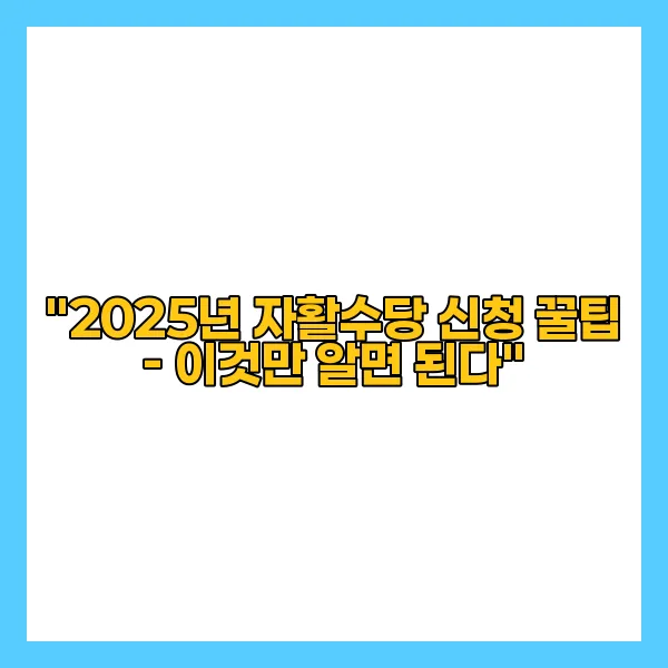 "2025년 자활수당 신청 꿀팁 - 이것만 알면 된다"